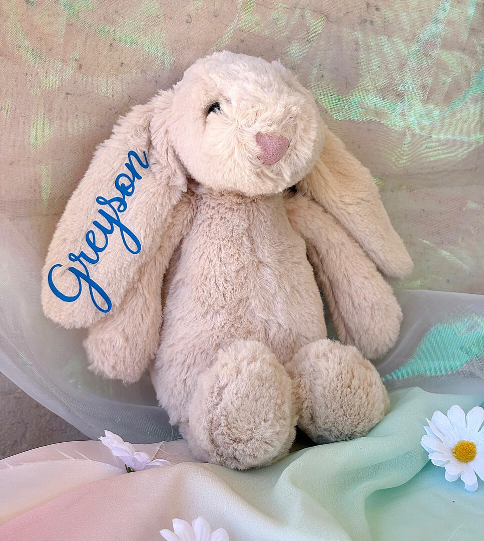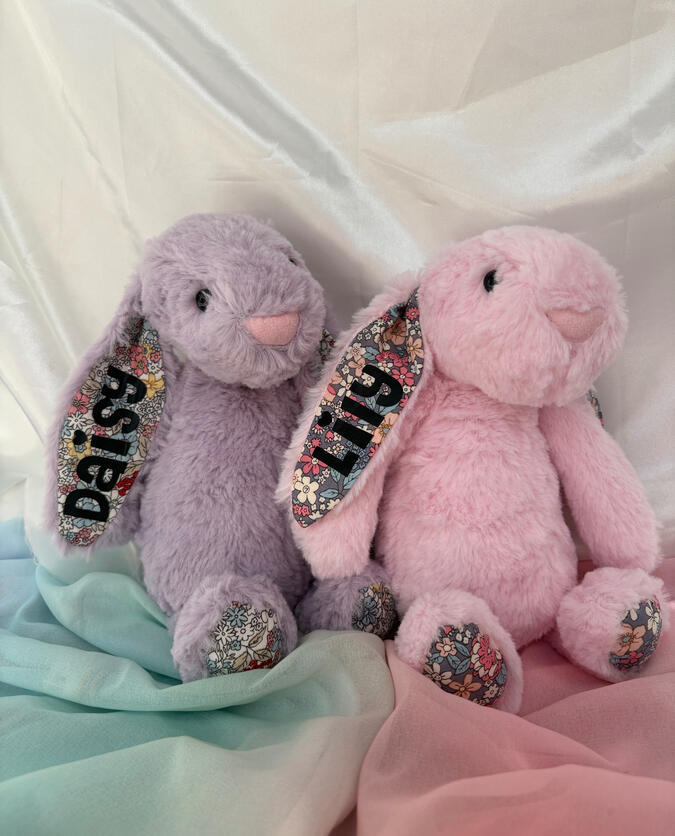 These soft, 25cm bunnies come in a range of classic and flower colors.Perfect for Easter, birthdays, keepsakes or any other occasion!