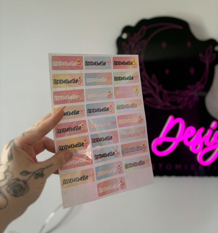 Our customisable name labels are the perfect solution for keeping your belongings organised in school, daycare, activities, and more!These labels are 100% waterproof, ensuring they withstand daily wear and tear, making them ideal for water bottles, lunchboxes, backpacks, books, etc