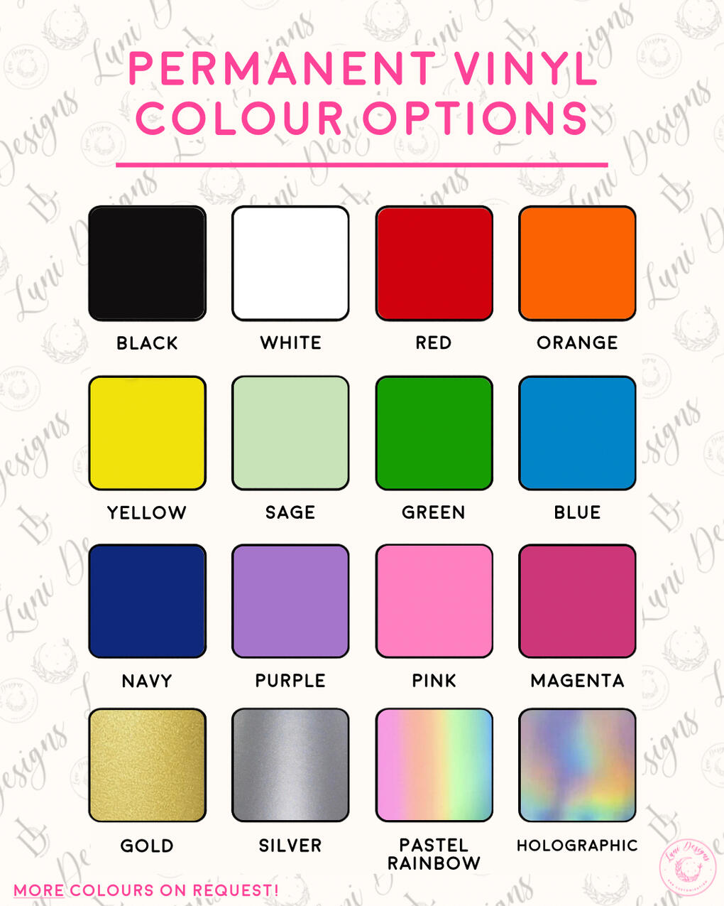 NOTE- Some colour stock for these are not always kept on hand! Turnaround time may vary from 1-4 weeks.