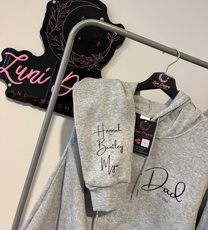 One of our best sellers for gifts! These hoodies and pullovers feature a right side EST year and title as well as names on the sleeve. Perfect gift for Dads, Mums, Grandparents etc.NOTE- Depending on the season stock is not always kept on hand and may need to be ordered in! Turnaround time may vary from 1-4 weeks. Other colours available on request.