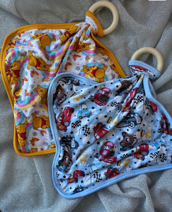 Made from eco-friendly bamboo fabric with a natural beechwood ring and personalised with your baby’s name. Perfect for newborns, baby showers and keepsakes.