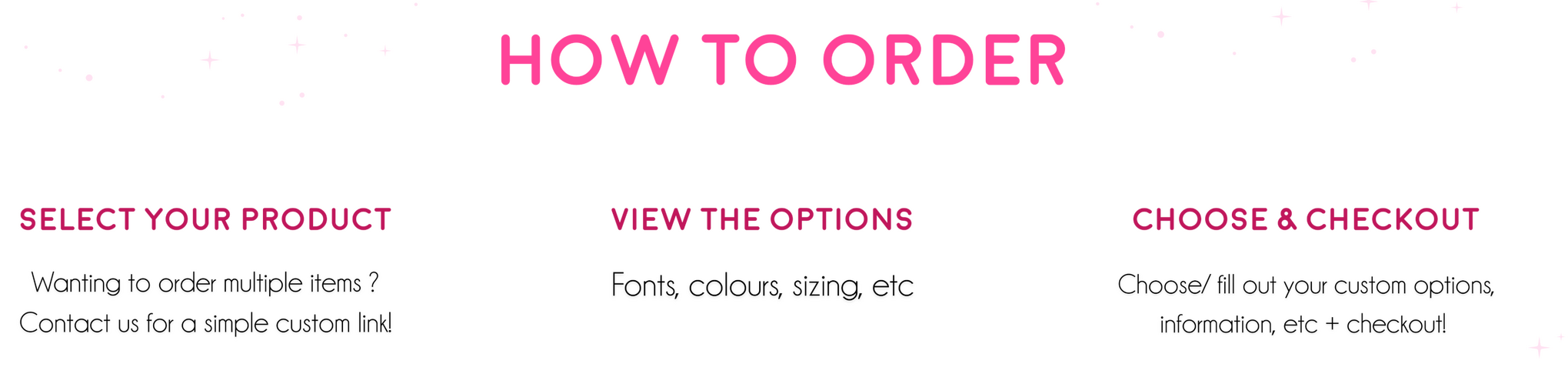 Describe your design request including theme, colours, wording, age, and any preferences in the "Design Details" part of the order form, include any notes for any glitter or metallic colour requests here also.